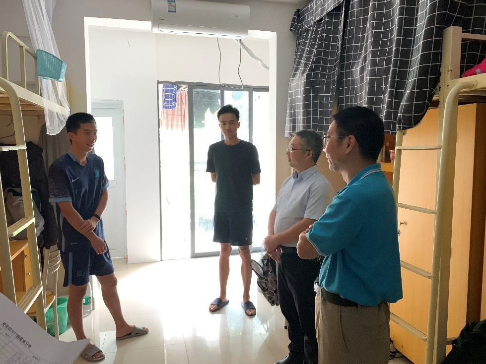 欧旭理书记和马国荣副书记带领年级辅导员深入本科2017、2018级员工宿舍,检查宿舍安全情况,仔细询问关心同学们的员工和生活情况,近距离了解员工思想动态,并着重了解了留校同学情况,叮嘱留校同学强化安全意识,注意用水用电安全,同学们对公司领导的亲切慰问和关怀倍感温暖。
