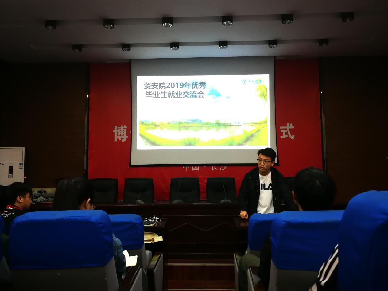 本次交流会邀请了本科15级城地、采矿、安全三个专业就业成功的优秀代表进行经验分享 ,四位就业员工代表结合自身经历,以风趣幽默的语言向同学们分享了应聘工作时的经验和注意事项。