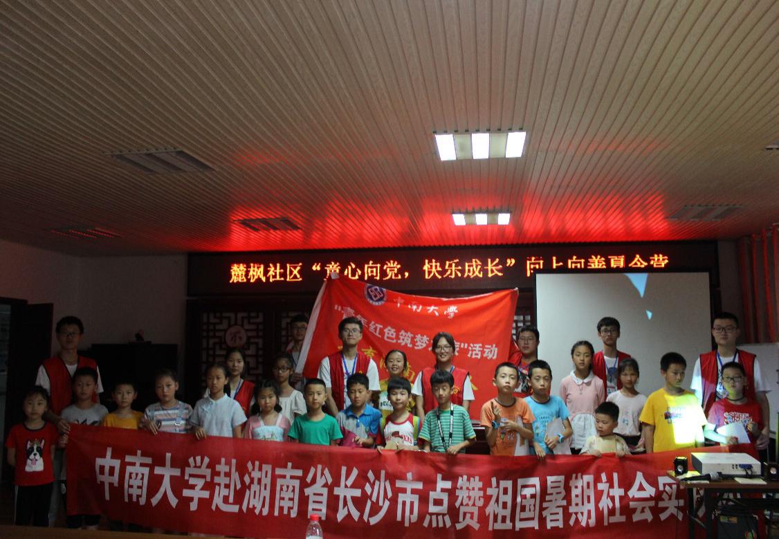 为积极践行党的十九大精神,发展中国特色社会主义优秀文化,2019年7月14日,球王会体育官网赴湖南省湘潭市湘潭县彭德怀故居“建国伟人红色故事”宣讲团联合球王会体育官网赴湖南省长沙市点赞祖国暑期社会实践团在长沙市岳麓区岳麓街道麓枫社区开展了“童心向党,快乐成长”主题宣讲会。本次宣讲活动主要面向长沙市岳麓区岳麓街道麓枫社区的青少年开展。