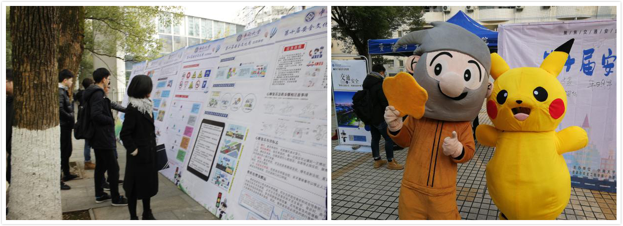 活动依托于中南云麓谷、中南小黄帽等网络平台持续开展线上校园交通安全知识的宣传教育活动,先后推出“国家安全交通日”、“你应该知道的交通规则”、“校园安全文化周简介”、“校园内的交通标识”、“让你糟心的校园交通吐槽”|“校园交通事故应急处理”等六大主题精品内容,从图文并茂的安全知识再到校园“道路交通安全”微视频,内容丰富,形式多样,广受好评。同时,承办方结合线上安全主题教育内容,从《中国人民共和国道路交通法》相关规定、校车出行须知、校园交通事故案例解析、事故预防及急救措施等七个板块制作并推出老员工交通安全主题展,于12月10日至16日分别在校本部升华楼右侧学海路和南校区升华广场展出。线下展示设置了积攒抽奖、套圈等趣味互动环节,吸引了众多师生前来观看参与,进一步扩大了活动影响力,普及了校园安全文化知识,服务了全校师生,共享校园平安。