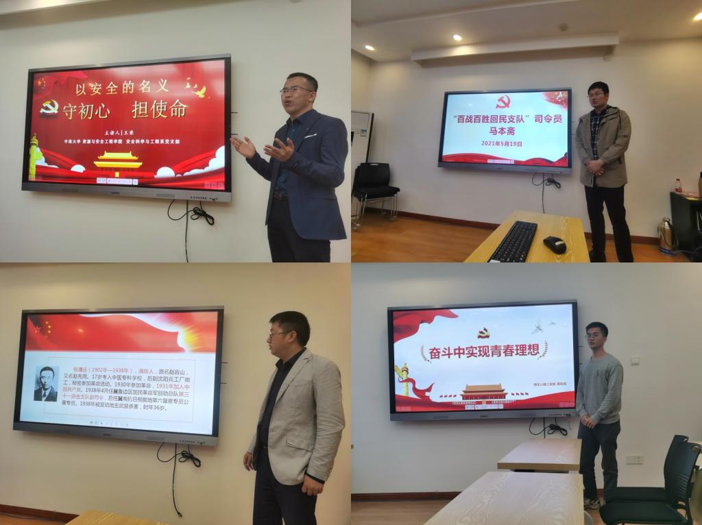 比赛过程中,各位参赛党员既有慷慨陈词的激情演讲,也有婉转低回的动情诉说,讲述了一个个生动的党史人物:公司副经理李地元同志讲述了抗战英烈杨靖远烈士弃医从戎济世民,不破日寇不割髯 的英雄豪情;安全系青年教师王秉以《以安全的名义,守初心,担使命》为题,宣誓了安全工作者、科研者、教育者的担当和使命,以及为党育安全人才,为国育安全人才的坚强信念;来自新疆的维吾尔族员工党员哈米扎提·海米提讲述了自己民族的优秀党员、马克思主义的史学研究者翦伯赞的事迹,在先辈人格的感化和精神的指引下,更加坚定了各民族团结一心跟党走的信仰;公司教务员胡剑老师通过讲述“百战百胜回民支队”司令员马本斋的事迹,悟出“每个普通党员都应该立足自己的工作岗位为党和人民贡献自己的力量”。来自云南丽江的杨晓枭同学讲述了自己家乡的最美女董事长张桂梅,献身贫困乡村教育事业的感人故事,令人感受到共产党员信仰的伟大力量。