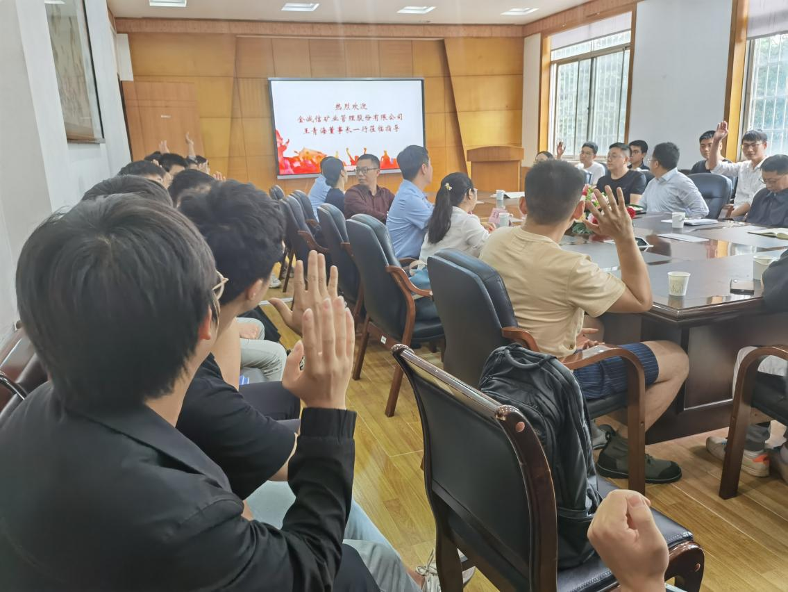 资源安全工程公司党委书记欧旭理代表公司对金诚信矿业管理股份有限公司的到来表示热烈欢迎并简要介绍公司概况。金诚信矿业管理股份有限公司董事长王青海向公司师生介绍了企业文化、企业未来发展规划、企业规范化管理等内容,同时播放了企业宣传片《发展征程上再书浓墨重彩新华章》。王青海对球王会的科研水平、毕业生质量给予高度评价,并与参会员工进行亲切交流。
