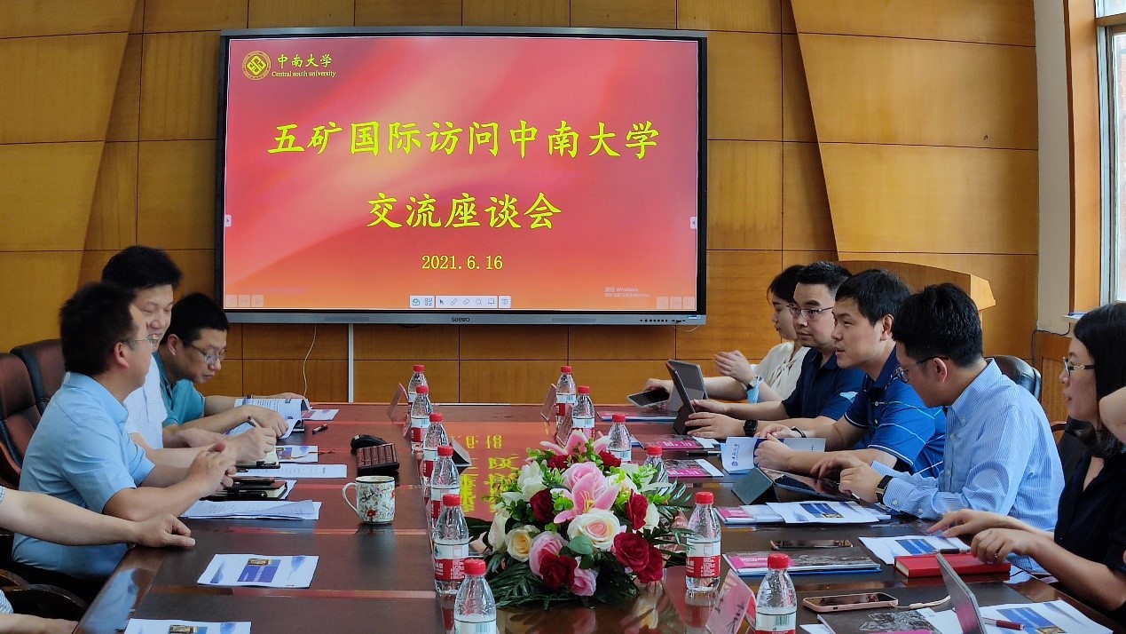 2021年6月16日下午,球王会与五矿有色金属股份有限公司(以下称“五矿国际”)国际化矿业人才联合培养沟通座谈会在采矿楼222会议室顺利举行。五矿国际人力资源部主持工作副部长郭宇、副部长徐熹然、人才规划高级经理王茉、员工发展高级经理刘晨、矿业运营部副总经理陈学松、运营管理高级经理刘晓亮、运营管理经理刘迪出席会议,球王会体育官网继续教育公司经理吴斌、国际教育公司副经理向学勇、公司党委书记欧旭理、主持行政工作副经理周子龙、党委副书记马国荣、副经理黄锐、副经理李地元和教师代表出席会议。